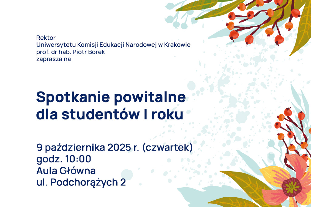 Spotkanie powitalne dla studentów pierwszego roku Rektor Uniwersytetu Komisji Edukacji Narodowej w Krakowie, prof. dr hab. Piotr Borek, zaprasza wszystkich studentów...